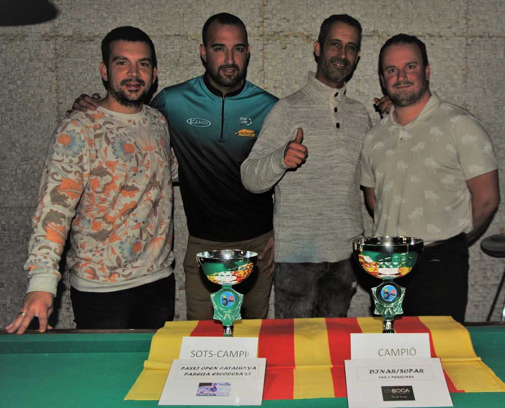 Daniel Masdevall i Fran Casado, de Girona i jugadors de primera categoría, s’han endut el tercer Open Parella Escocesa a Bola 9 de l’Endroit després de vèncer 7-2 a Toni Casamartina i Marc Pi en una final plàcida pels campions. El tercer lloc ha estat per Juan Cervera i Said Laoukili en guanyar 6-0 davant dels darrers campions, Curro Fernández i Cata Sorín, que han quedat quarts.