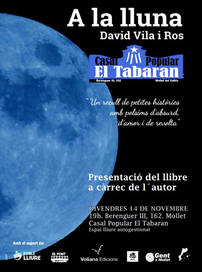 El Casal Popular El Tabaran de Mollet presenta aquest divendres 14 de novembre el llibre ” A la lluna”, amb el seu autor David Vila i Ros.