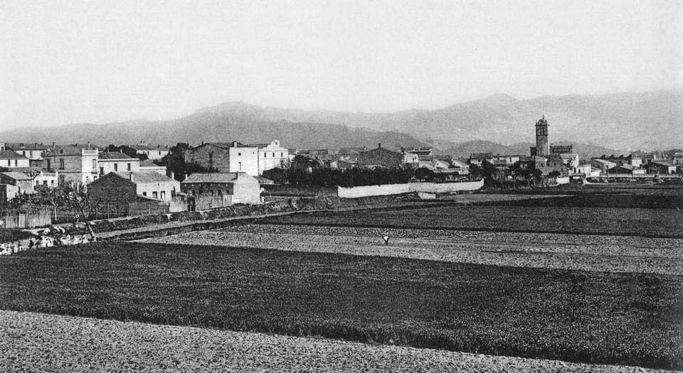 Vista general de Mollet a principis del segle XX. L’any 1910 tenia una població de 2695 habitants.