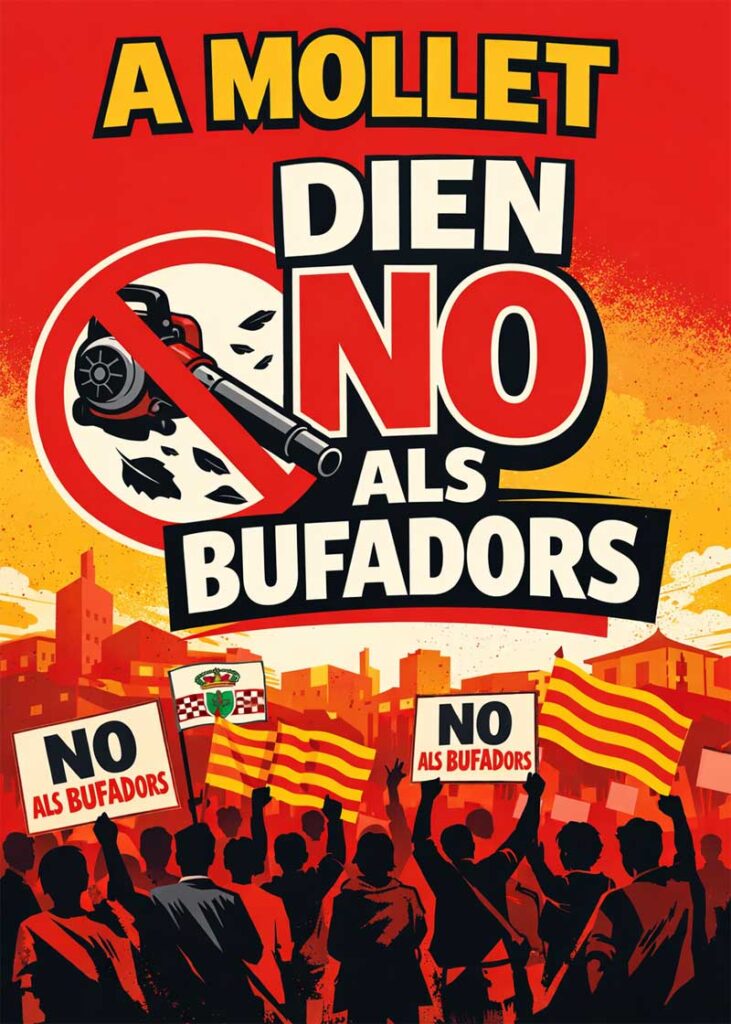 Diversos col·lectius veïnals de Mollet del Vallès han posat en marxa una campanya per denunciar l’ús de bufadors mecànics en els serveis de neteja viària. La iniciativa, sota el lema “A Mollet diem NO als bufadors”, vol alertar sobre els efectes que aquests aparells tenen sobre la salut, el medi ambient i el benestar als barris.