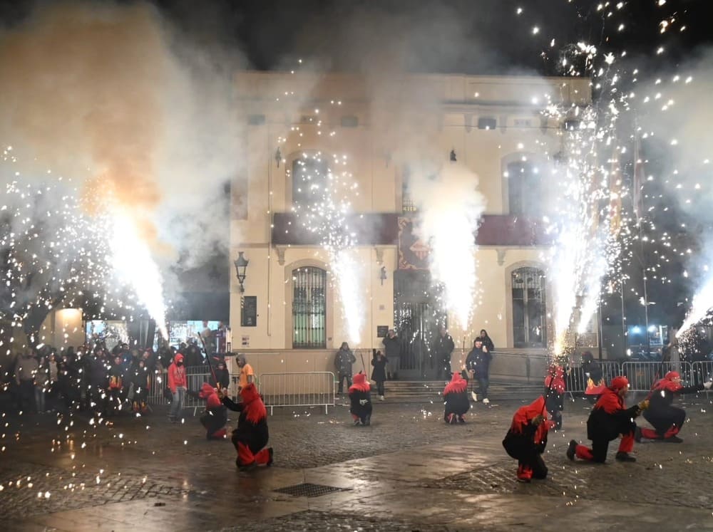 Prèviament a l’espectacle principal, els més petits de la colla Espiadimonis van protagonitzar el correfoc infantil, que va recórrer els carrers del centre, des de l’avinguda Llibertat fins a la plaça Prat de la Riba. Més tard, i també recuperant un acte ajornat el cap de setmana anterior, va tenir lloc el correfoc d’adults, amb la participació del Ball de Diables de Mollet i dues colles convidades: els Encendraires de les Franqueses i els Llamps i Trons de Martorelles.