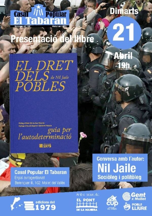 El Casal Popular El Tabaran de Mollet presentarà el dia 21 d’abril (19h) el llibre “El dret dels pobles”, amb el seu autor, Nil Jaile i Casademont.